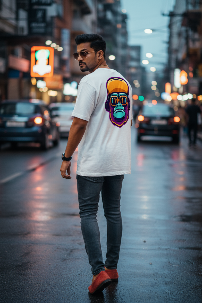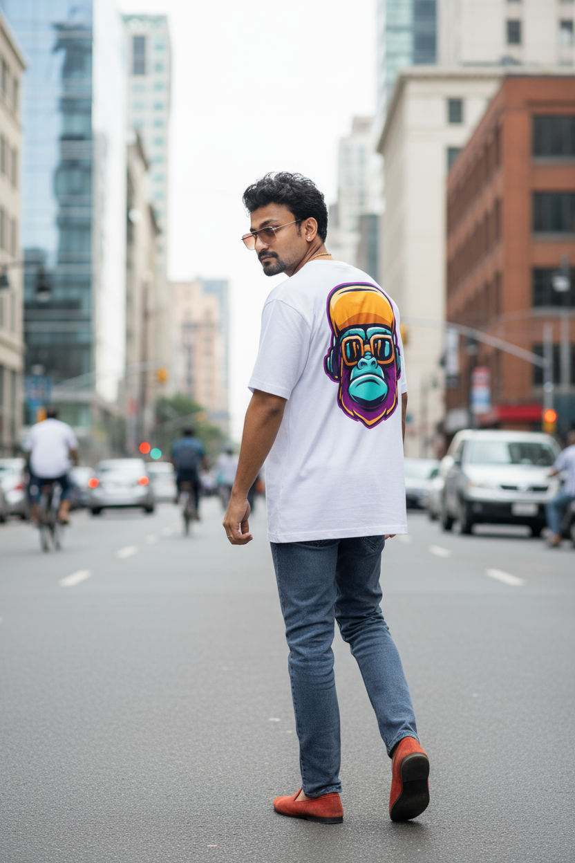 The White DJ Monkey tee turns sound into style. Featuring a high energy monkey behind the decks, this design celebrates the wild rhythm inside every free soul. It’s playful, confident, and alive made for men who mix hustle with groove.