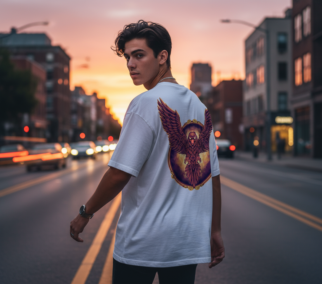The “White Eagle” tee symbolizes dominance, focus, and fearless flight. Set on a clean white base, the bold eagle graphic spreads its wings with pride — representing strength, clarity, and the will to rise above limits.
